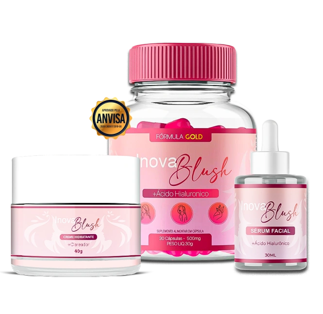 Para uma pele firme, iluminada e uniforme, você precisa do INOVA BLUSH – a fórmula que age onde nenhum creme ou cápsula sozinhos conseguem chegar.